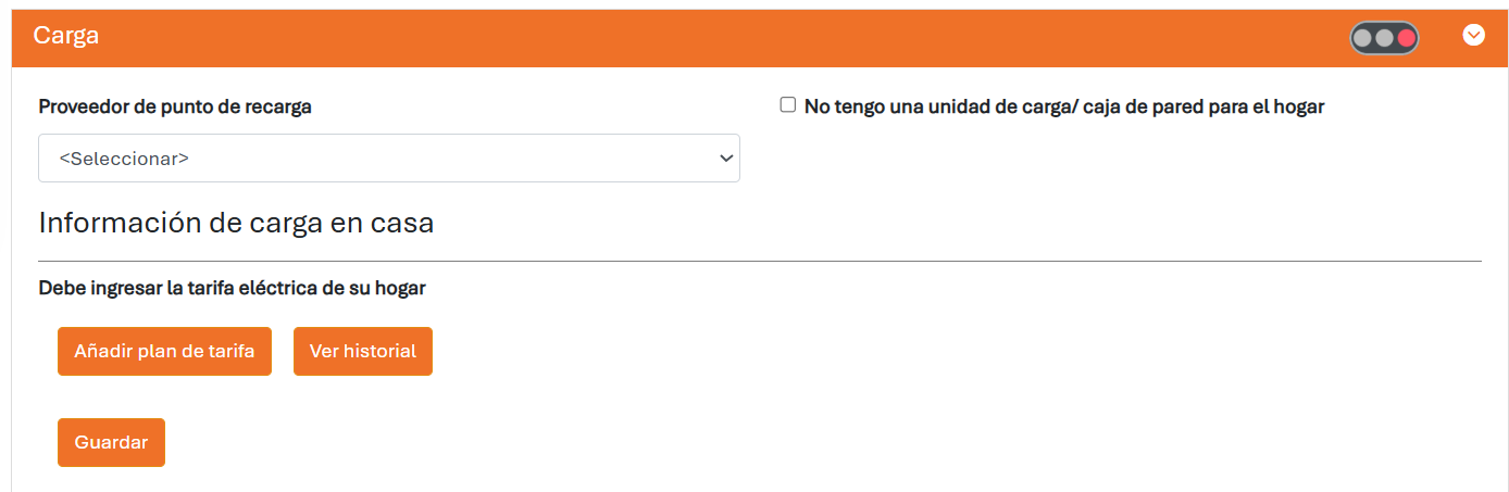 Si no dispones de un cargador doméstico, marca la casilla «No tengo un carga/ caja de pared para el hogar». De este modo, se desactivará la tarea pendiente que te solicita que subas la información sobre la tarifa doméstica. Pero ten en cuenta que esto también te impedirá añadir cualquier valor de kWh al cerrar la sesión.