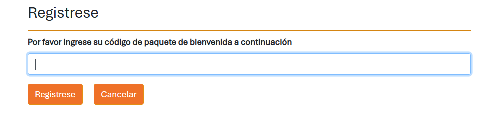 Aquí se te pedirá que introduzcas el Código del Paquete de Bienvenida proporcionado por tu empresa. Por favor, haz clic en 'Regístrate' de nuevo una vez que lo hayas hecho.