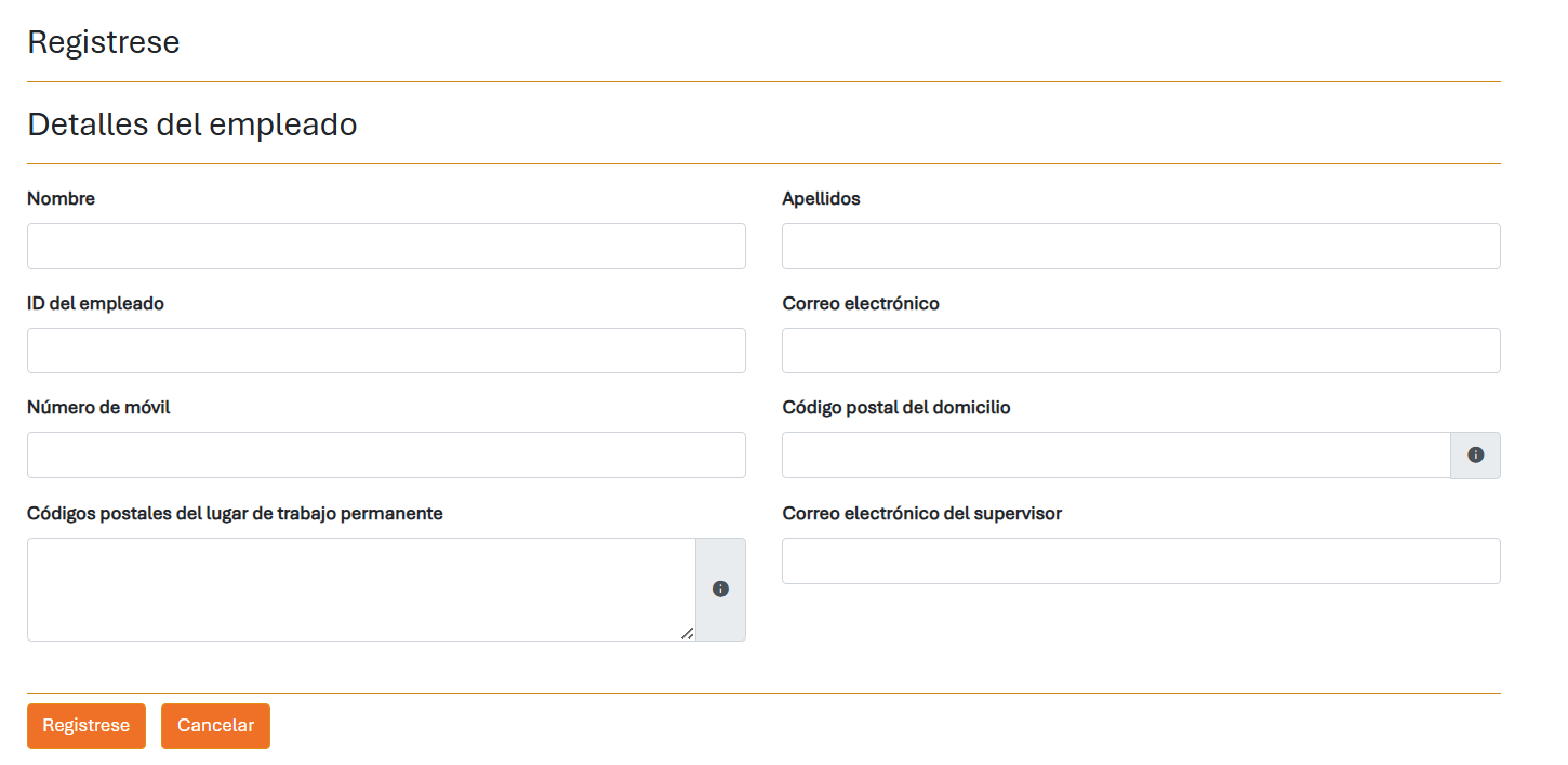 Si acabas de incorporarte a la empresa y aún no tienes número de identificación de empleado, utiliza tu apellido y tres números aleatorios; por ejemplo: Apellido729. Al introducir tu dirección de correo electrónico, utiliza tu correo electrónico del trabajo siempre que sea posible.