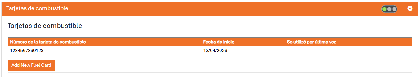Si tienes la opción de Tarjetas de Combustible para empleados en Mis datos, puedes ver la tarjeta de combustible asignada a tu cuenta o añadir una nueva tarjeta pulsando "Añadir nueva tarjeta de combustible".