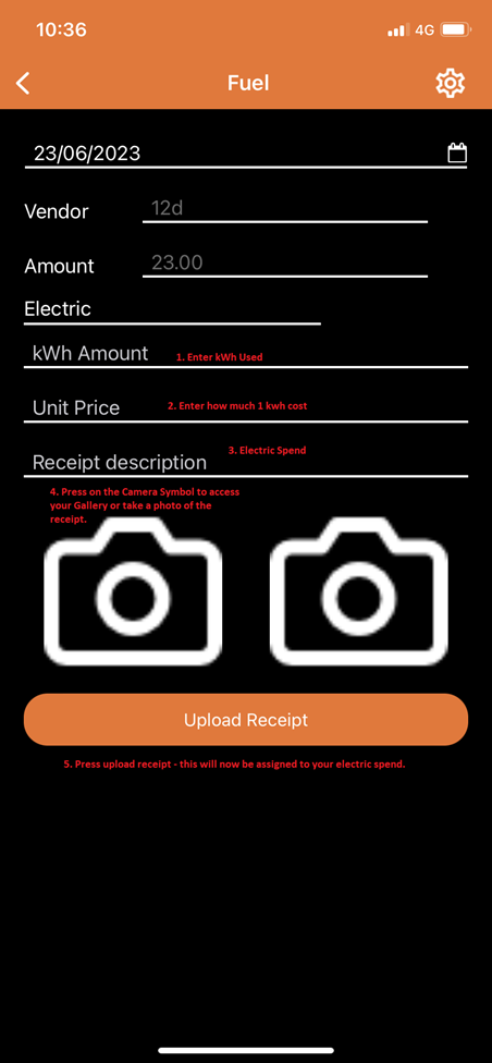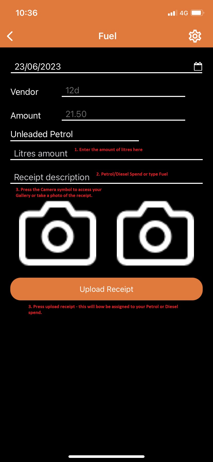 Puedes usar la app Miles (Mileage Track en la App y Play Store) para subir tus recibos. Cuando uses la app, por favor mira los siguientes ejemplos.