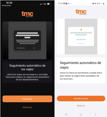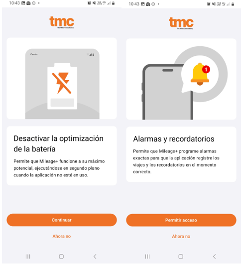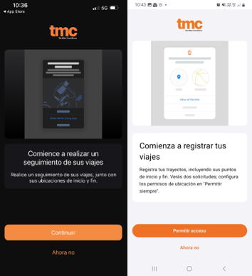 Cuando descargas Mileage+, te guiarán a través de la incorporación para activar todos los permisos relevantes. Si usas AutoTrack para registrar tus viajes, asegúrate de activar todos los permisos con acceso completo para la mejor experiencia de seguimiento.