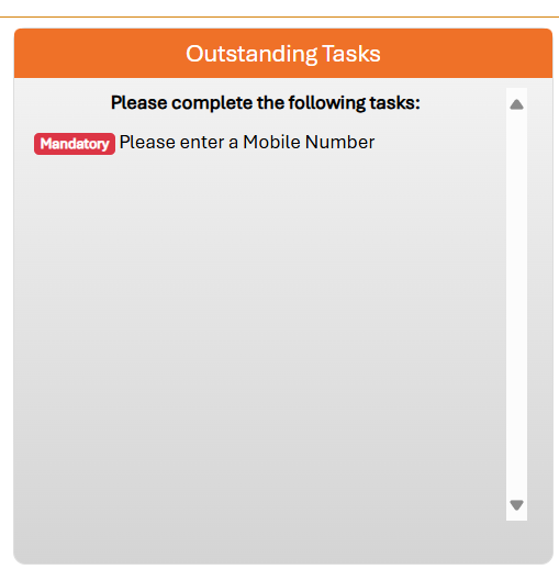 From your dashboard, you will have an outstanding tasks box that will display any information that needs updating or tasks that you need to complete.